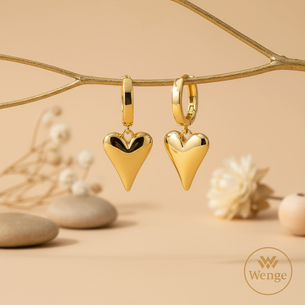 Bold Heart Drop Hoop Earrings – 18K Gold Plated