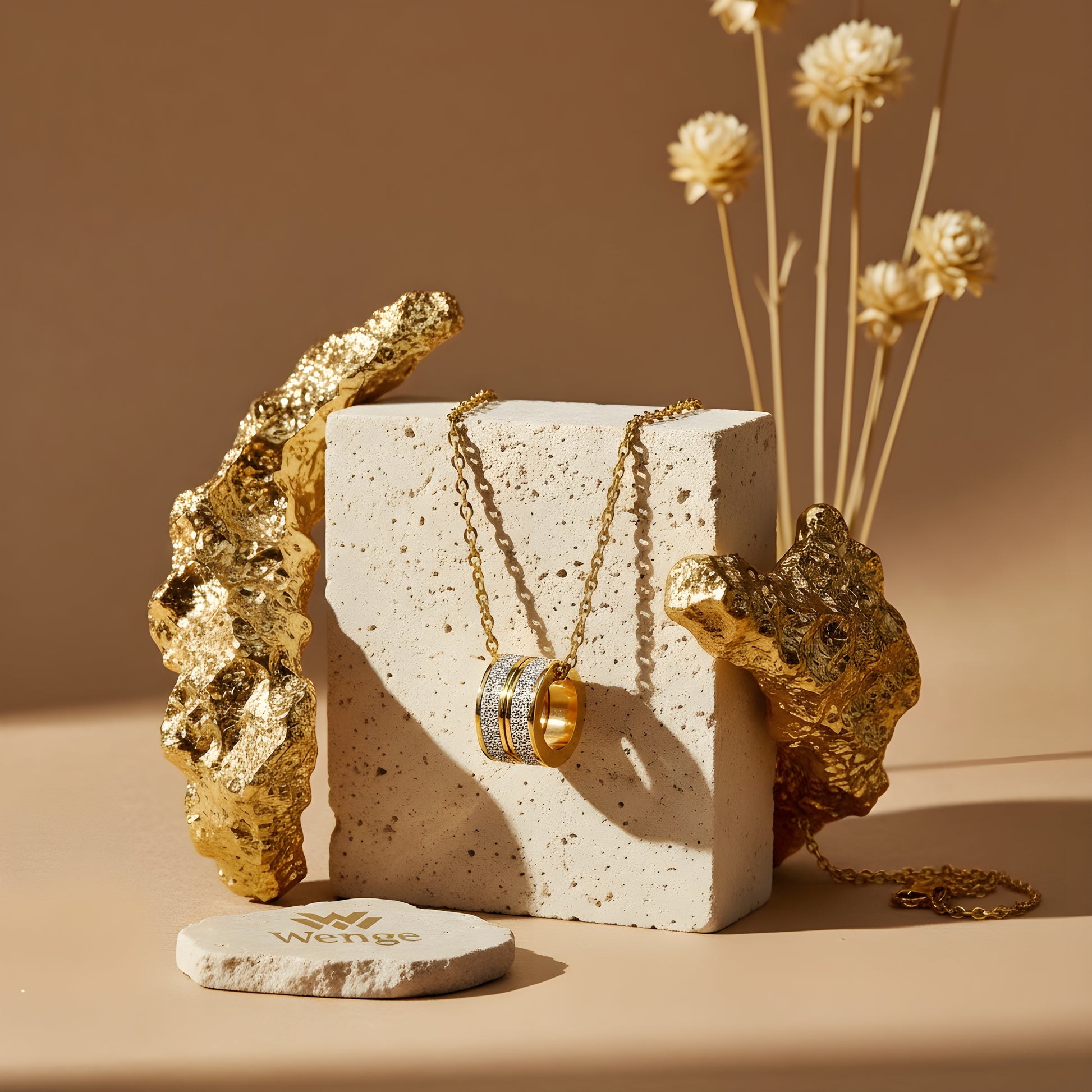 A timeless necklace from Wenge, crafted with stainless steel and 18K gold plating, accented with cubic zirconia. Lightweight, waterproof, hypoallergenic, and tarnish-resistant, it’s perfect for elegant styling.