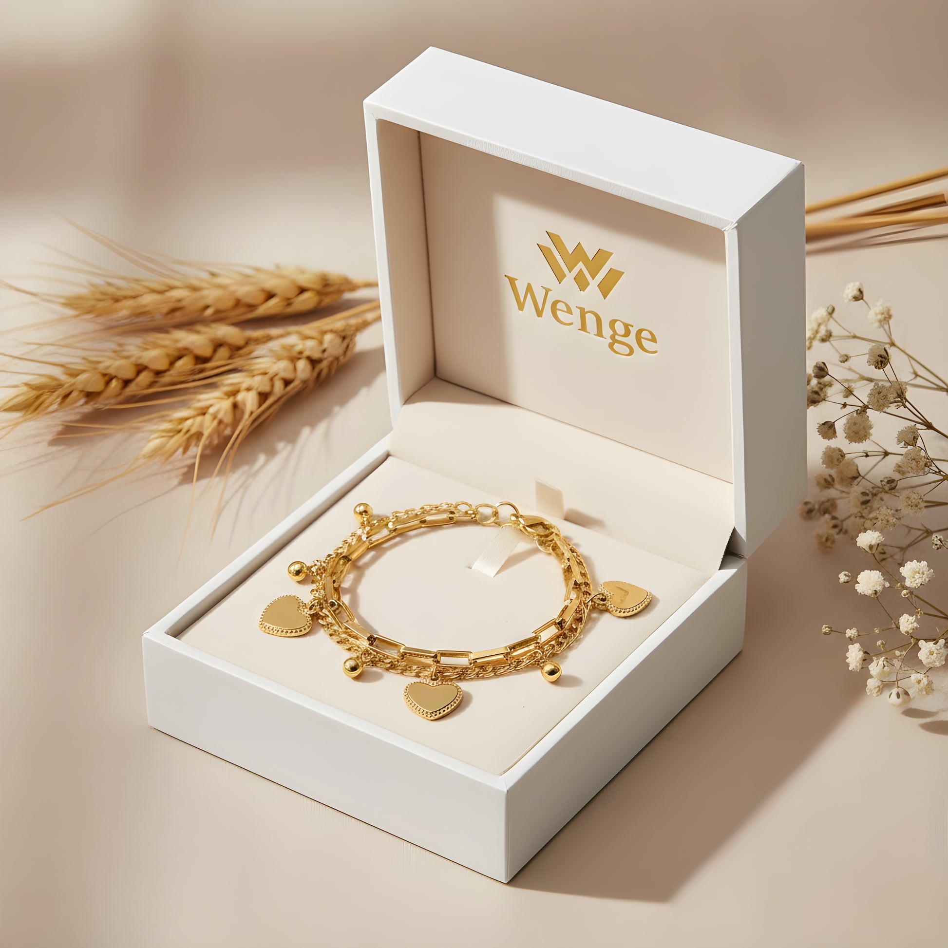 A timeless bracelet from Wenge, crafted with stainless steel and 18K gold plating. Lightweight, waterproof, hypoallergenic, and tarnish-resistant, it’s perfect for everyday wear or special occasions.