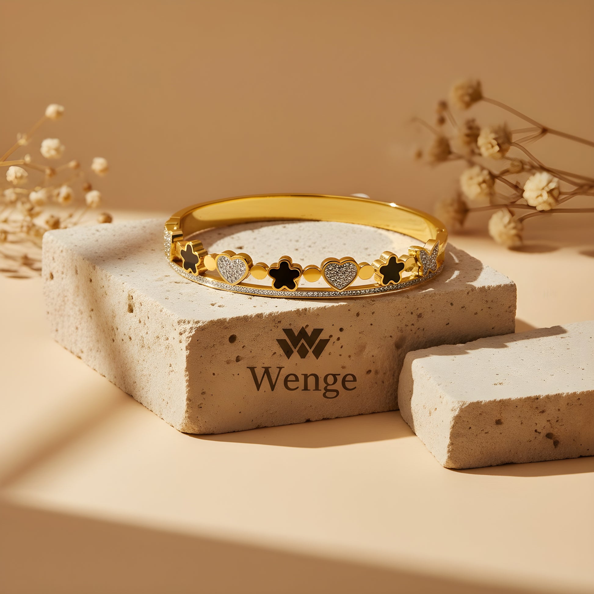 A refined bracelet from Wenge, crafted with stainless steel and 18K gold plating, accented with cubic zirconia. Lightweight, waterproof, hypoallergenic, and tarnish-resistant, it’s perfect for elegant styling.