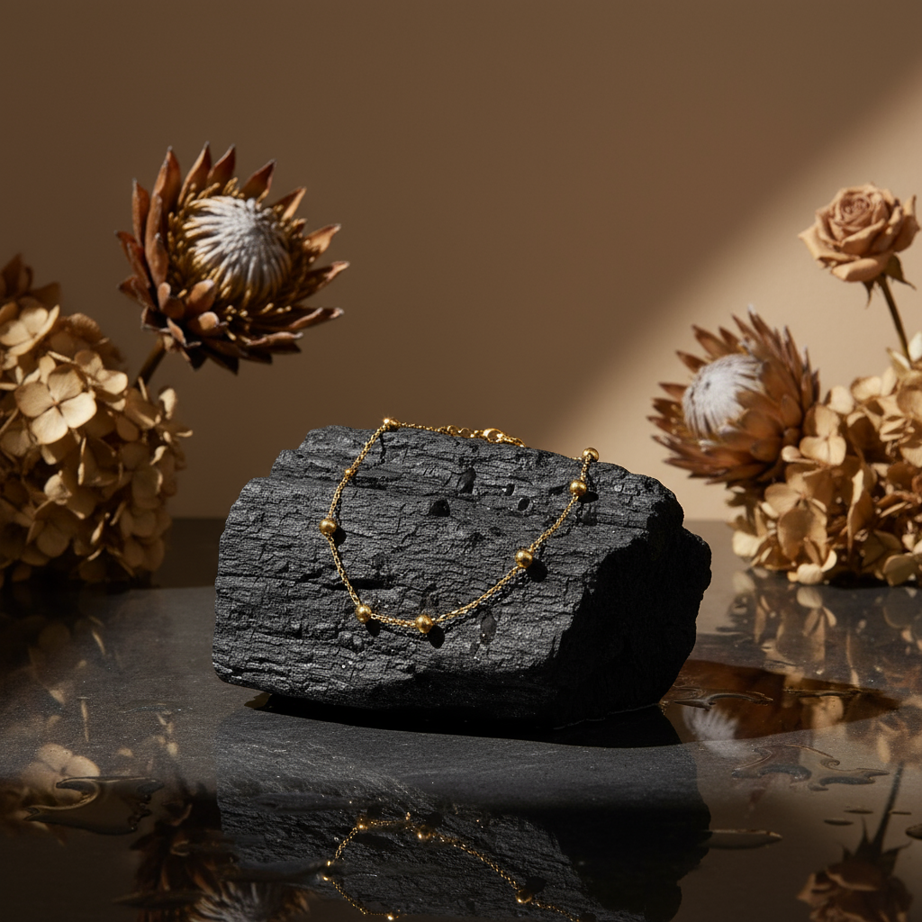 A timeless anklet from Wenge, crafted with stainless steel and 18K gold plating. Lightweight, waterproof, hypoallergenic, and tarnish-resistant, it’s perfect for everyday styling.