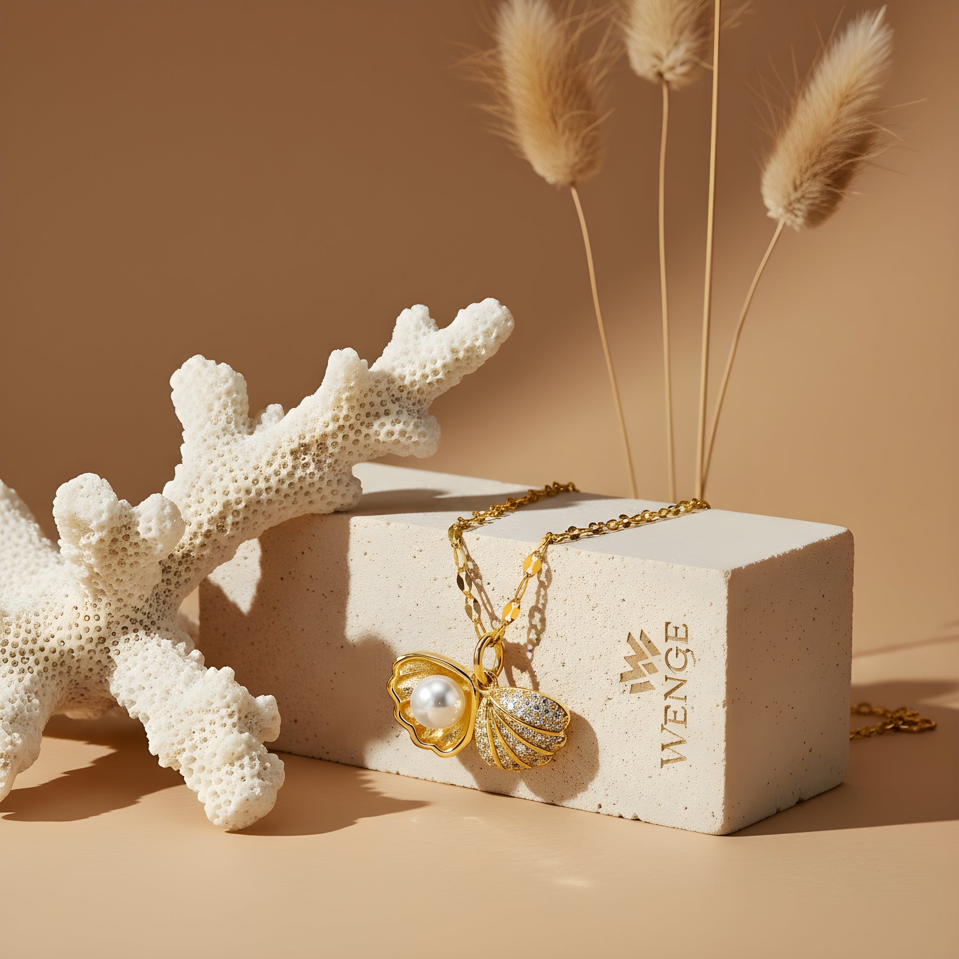 A timeless necklace from Wenge, crafted with stainless steel and 18K gold plating, accented with pearl imitation. Lightweight, waterproof, hypoallergenic, and tarnish-resistant, it’s perfect for everyday wear or beach-inspired looks.